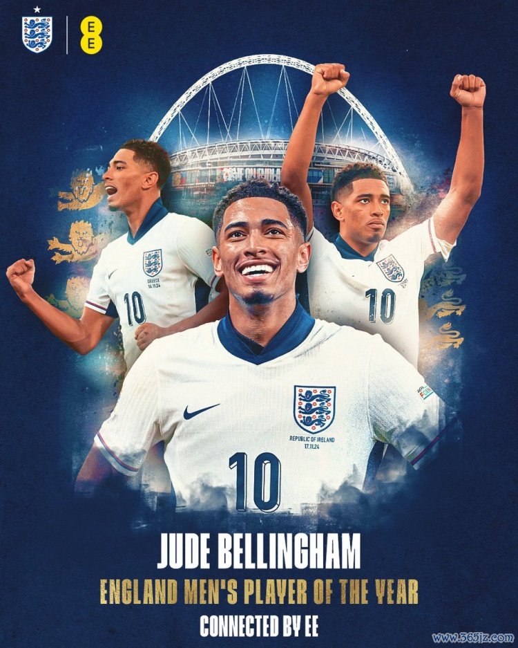 10月1日讯 英格兰代表队书记,贝林厄姆荣获2024/25赛季英格兰队最好男球员。