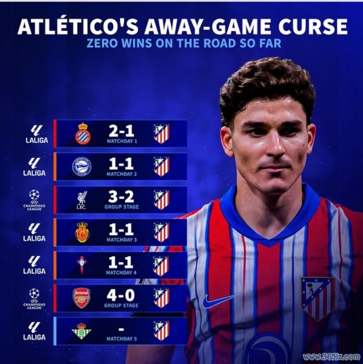 数据统计表露,马竞本赛季各项赛事6个客场仅获得3平3负: