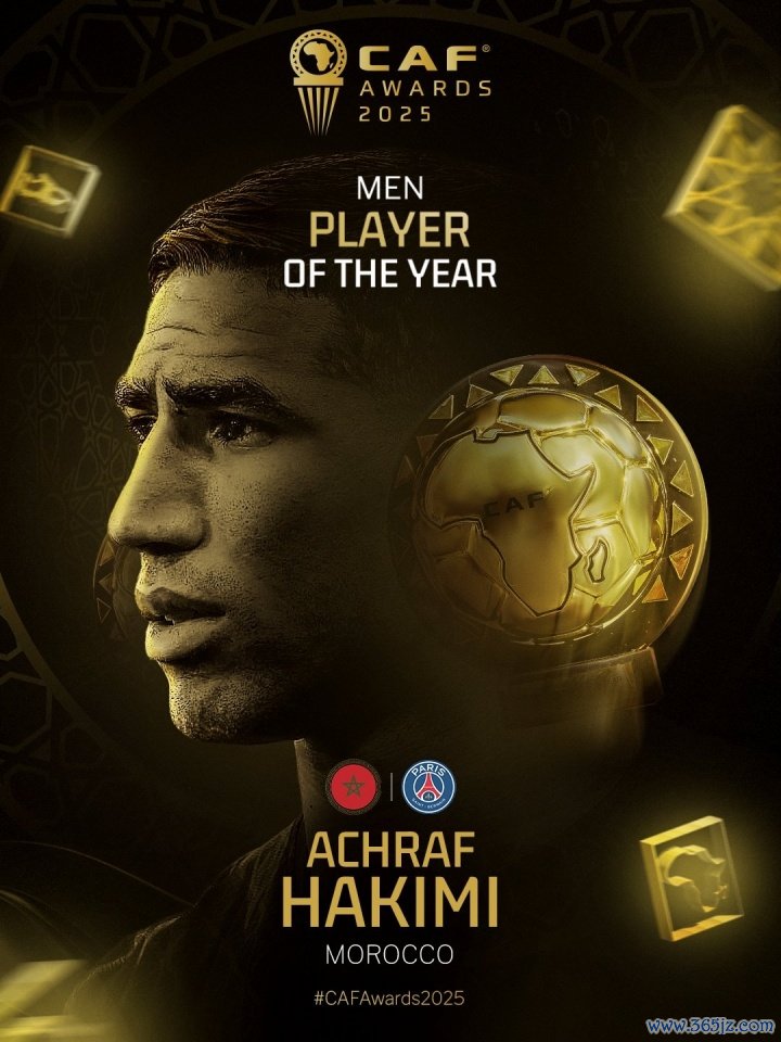 11月20日讯 非洲足联官方音书,阿什拉夫打败萨拉赫和奥斯梅恩,当选2025年非洲足球先生。