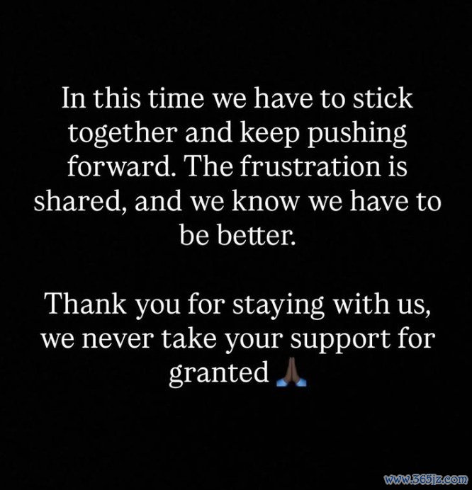 中场帕佩·萨尔在赛后通过社媒发文向球迷们致歉:“在这段手艺,咱们必须配合一致,持续前进。咱们一样感到不振,而且深知咱们必须作念得更好。”