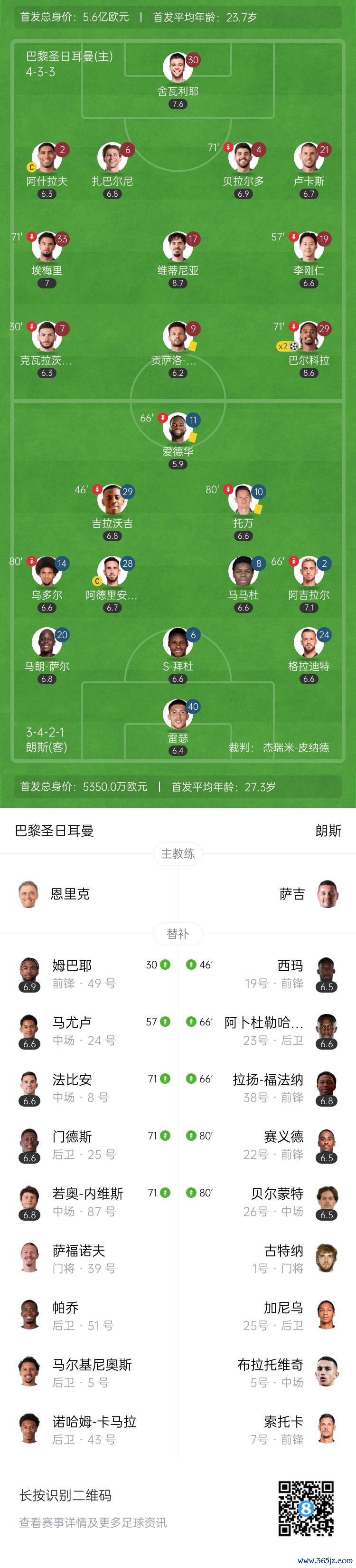 直播吧9月15日讯 北京时间9月14日晚23时15分,2025-26赛季法甲第4轮在王子公园指引场张开角逐,巴黎圣日耳曼主场迎战朗斯。上半场巴尔科拉兜射天下波,维蒂尼亚抢阵一火助攻,克瓦拉茨赫利亚伤退,下半场巴尔科拉双响+贴地斩,维蒂尼亚再送助攻,李刚谦恭贝拉尔多伤退。最终巴黎圣日耳曼主场2-0驯顺朗斯,巴黎联赛开局赢得4连胜领跑积分榜,巴黎本场3东说念主伤退+周中欧冠将对阵亚特兰大。