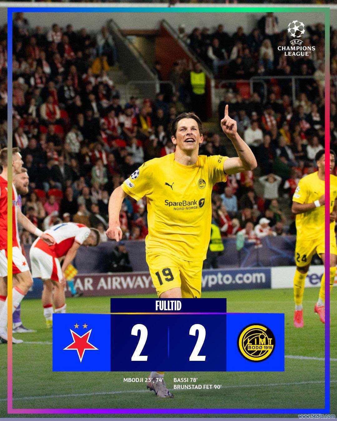 雷速体育9月18日讯 欧冠联赛阶段首轮,初度参预欧冠正赛的博德耀眼客场2-2绝平布拉格斯拉维亚。