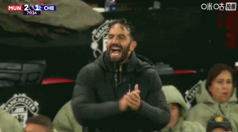 曼联被扳回一球后,场边阿莫林猛猛饱读掌给球队打气