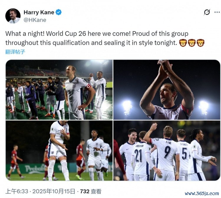 凯恩社媒晒出谢场的像片,并配文:“何等高明的整宿!2026年宇宙杯咱们来了!为球队辞世初赛中的进展感到骄横,今晚更所以精彩的成效锁定席位!”
