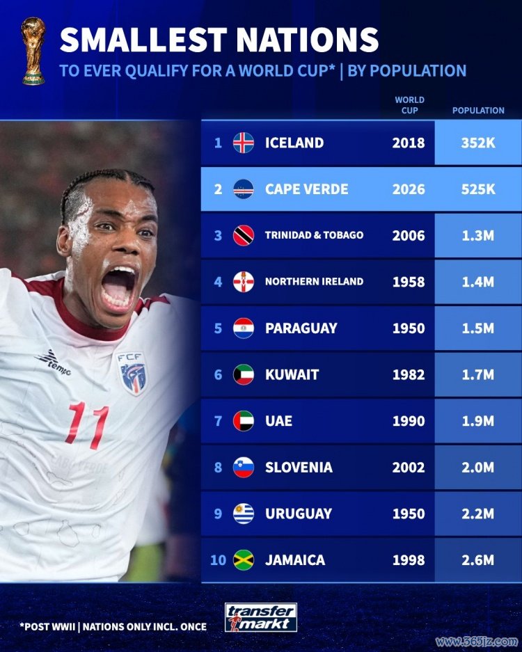 10月15日讯 德国转会市集列出了进入宇宙杯东谈主口最少的国度,冰岛居首,佛得角次席。