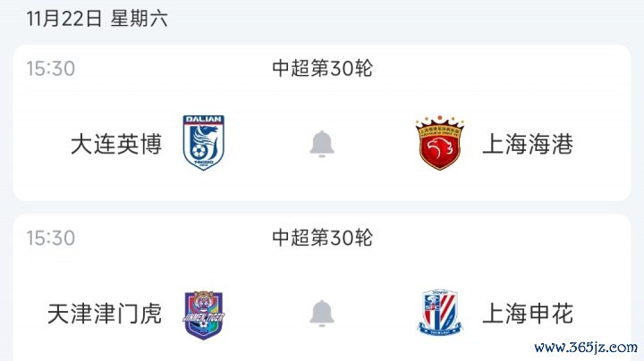 中超末轮将在11月22日15点30分点同期开球,争冠花样如下: