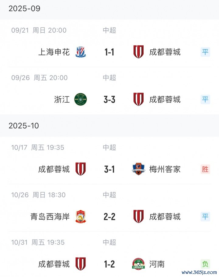 10月31日讯 中超第29轮,蓉城1-2遭河南逆转,剩1轮落伍4分退出争冠。蓉城近5轮1胜3平1负仅拿6分。