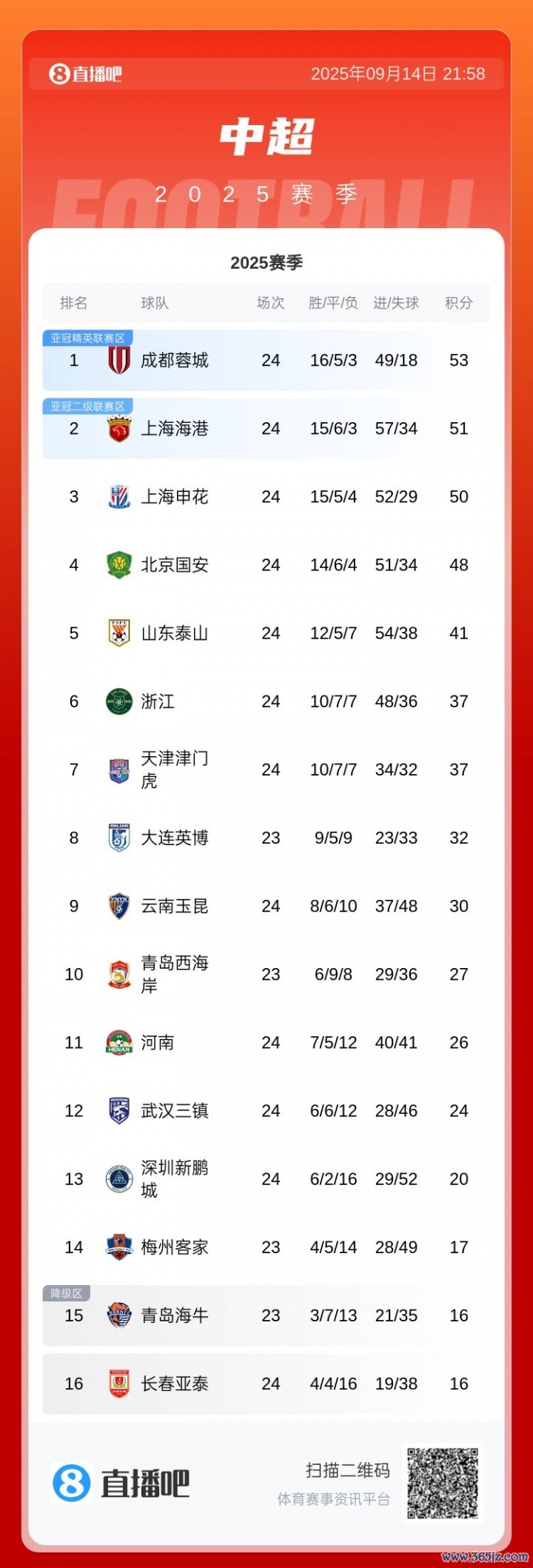 在中超第24轮适度后,蓉城还以2分领跑积分榜。但近5轮1胜3平1负丢了9分,最终导致第29轮径直退出争冠!