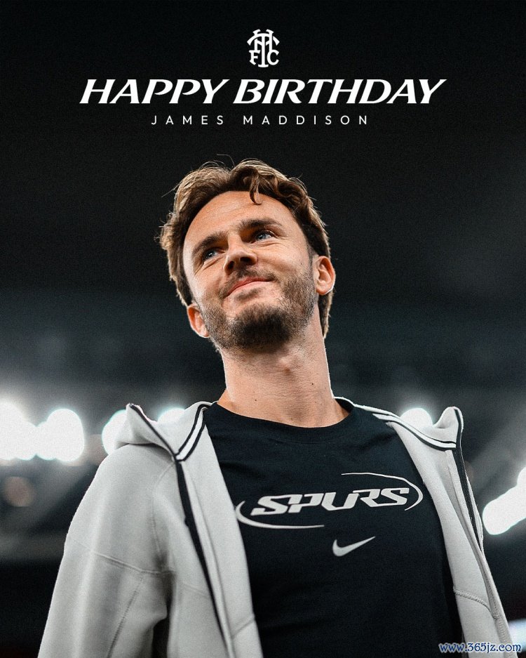 热刺官方社媒晒出麦迪逊的诞辰海报,配文:“祝麦迪逊诞辰舒畅!”