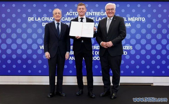 在伯纳乌荣誉包厢举行的庆典上,克罗斯被授予德国业绩勋章骑士十字勋章。德国总统施泰因迈尔躬举止这位皇马外传和宇宙足坛巨星颁发了这一荣誉。出席授勋庆典的还有皇马名誉主席何塞·马丁内斯·皮里、机构联系总监布特拉格诺、主帅阿隆索、球员巴尔韦德、吕迪格,以及皇马外传球员罗伯托·卡洛斯、阿韦罗亚和索拉里。