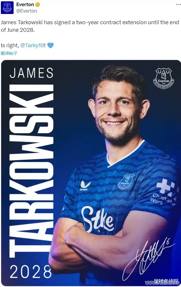 官方:埃弗顿布告和塔可夫斯基续签了2年合同,这名后卫的新合同将在2028年到期。
