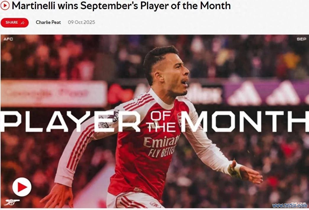 官方:马丁内利被球迷票选为了队内9月份最好球员,巴西东谈主赢得了54%的赈济。