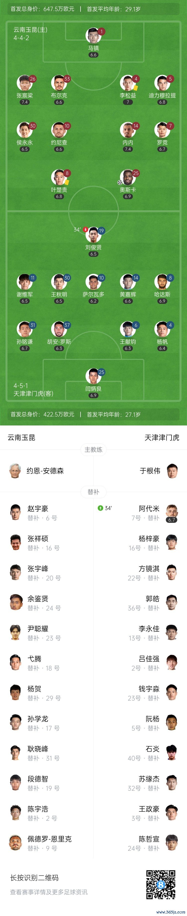 第35分钟,云南玉昆右侧角球开出,禁区内王献均手球犯规!主裁判判罚点球!奥斯卡点射破门,云南玉昆1-0跨越天津津门虎↓