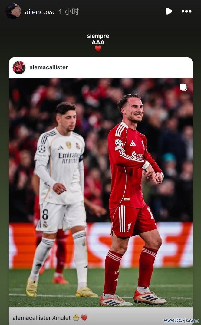 女友也通过社媒用双关回话了麦卡的示爱:“AAA,持久”(麦卡利斯特的名字亚历克西斯Alexis、女友名Ailén、两东说念主的孩子Alaia的首字母齐为A)。