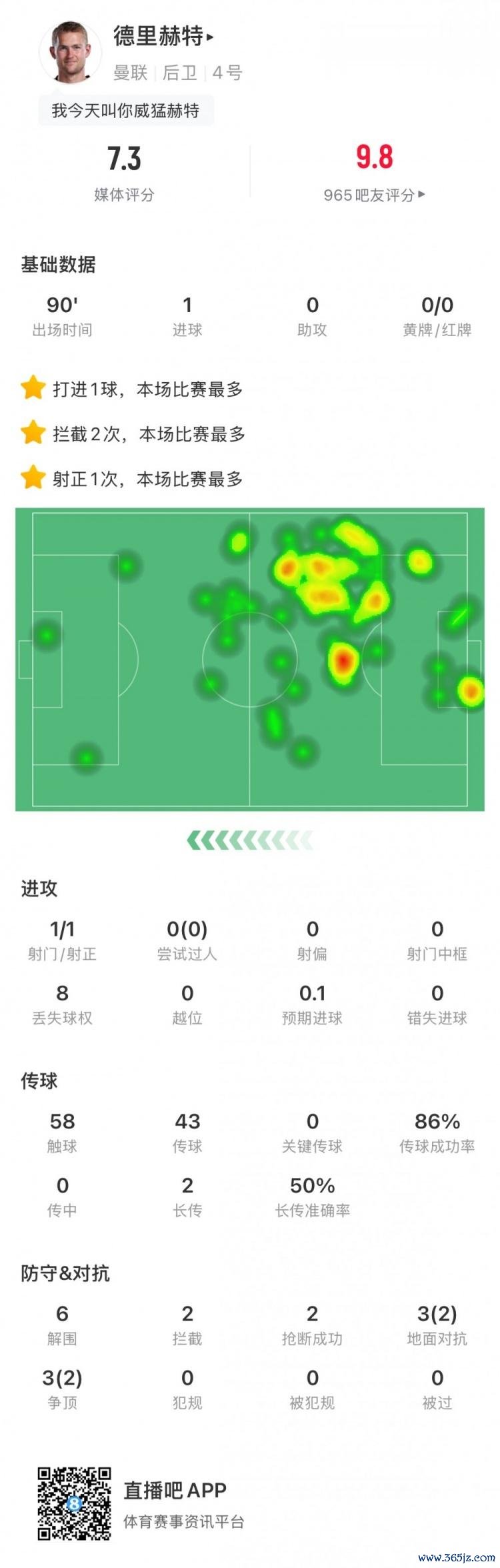 德里赫特全场数据如下: