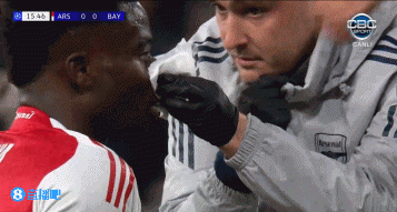 第16分钟,诺伊尔出击头球突围将球顶在萨卡脸上,萨卡出血了队医进场处分↓