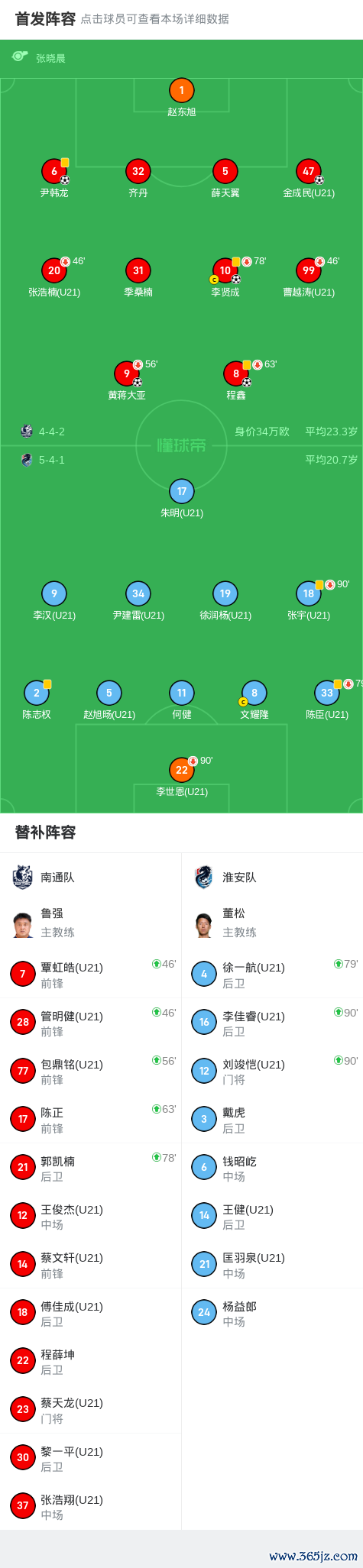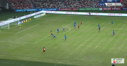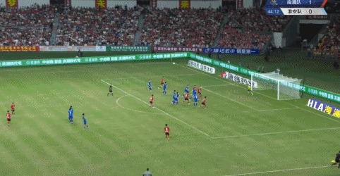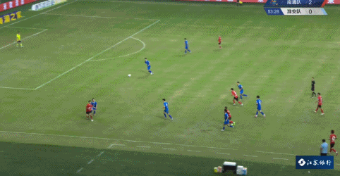 第44分钟,黄蒋大亚头球被扑,随后补射破门,南通队2-0淮安队