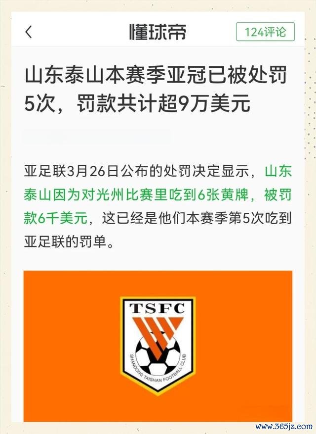 亚足联先后5次处罚山东泰山,其中有场内要素,有些是俱乐部无法方案的场外要素。