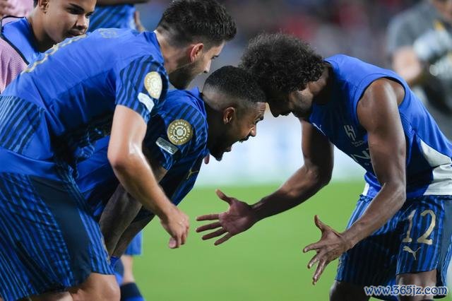 6月30日,利雅得月牙队球员马尔科姆(右二)进球后与队友庆祝。当日,在好意思国佛罗里达州奥兰多进行的2025年海外足联俱乐部全国杯(世俱杯)八分之一决赛中,沙特利雅得月牙队4比3投诚英格兰曼彻斯特城队,晋级八强。