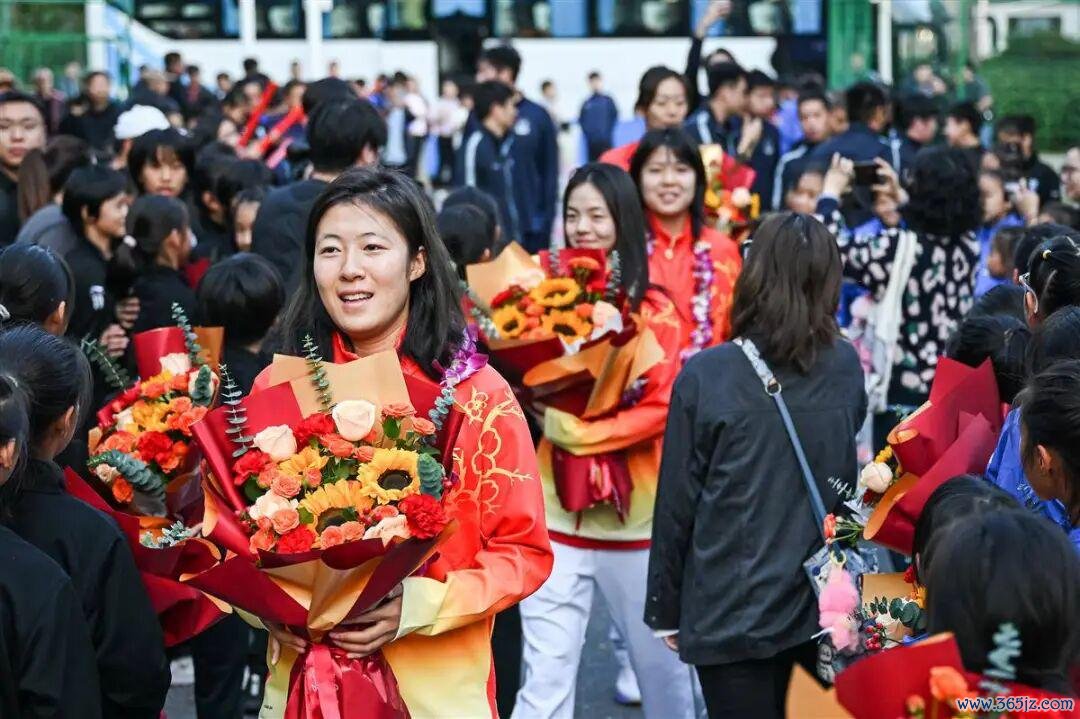 礼花喷薄而出,掌声如雷响起。当姚伟、吴海燕、陈晨等球员走下大巴时,转眼被小球迷们团团围住。签名、合影,密斯们耐烦肠得志着每一个条件。吴海燕在合影纰缪,摸了摸小球员的头,尽是期望地说谈:“异日就靠你们啦!”